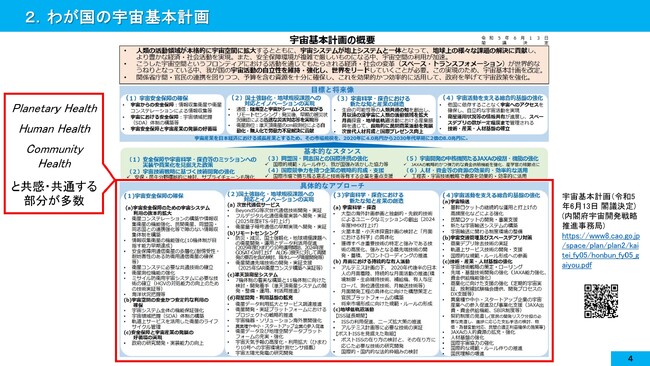 岡山大学のビジョンと宇宙の関係は、本学だけが考えていることではなく、国が策定している「宇宙基本計画」などにおいても、数多くの共感、共通する部分があります。