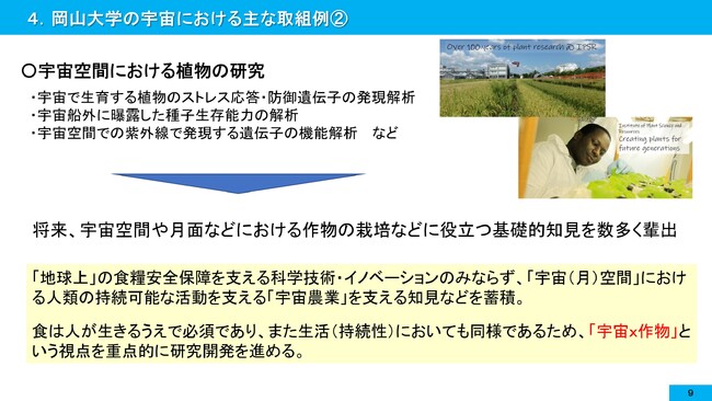 将来、宇宙空間や月面などにおける作物の栽培などに役立つ基礎的知見を数多く輩出しており、これは「遠い未来」ではなく、すぐ、まじかに実装していくことなるかと思います。作物・植物科学から宇宙を支える取組を推進していきます。