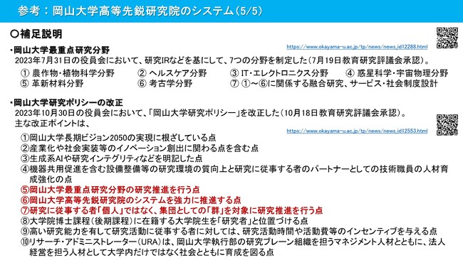 ・【岡山大学】「岡山大学最重点研究分野」を制定~地域と地球の未来を共創し、世界の革新に寄与する研究大学を実現するために~