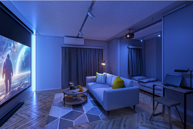 高画質4Kプロジェクターや立体音響設備、調光・調色可能な照明システムなど、室内設備充実!