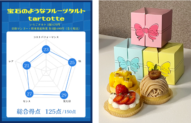 【1位】 宝石のようなフルーツタルト tartotte / いちごタルト 1個 670円、完熟マンゴー・熊本県産和栗 各1個 690円 (全て税込)