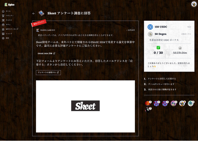 ELSOUL LABO B.V. (エルソウルラボ、本社: オランダ・アムステルダム、代表取締役 CEO: 川崎文武)および、同社の運営するオープンソース開発を応援する社会貢献型 Web3 ゲームの Epics DAO は、Solana ブロックチェーン上に展開する Epics プラットフォームにて、クリプト・仮想通貨によるインセンティブを通じてグローバルに協力して仕事ができるという新たなバウンティプログラムの開始を発表しました。