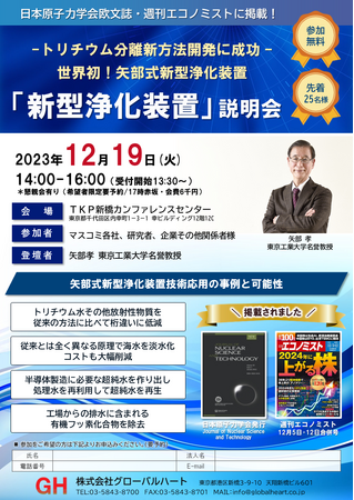 世界初!トリチウム水処理に新たな方法 - 矢部孝東京工業大学名誉教授「新型浄化装置」 説明会を開催