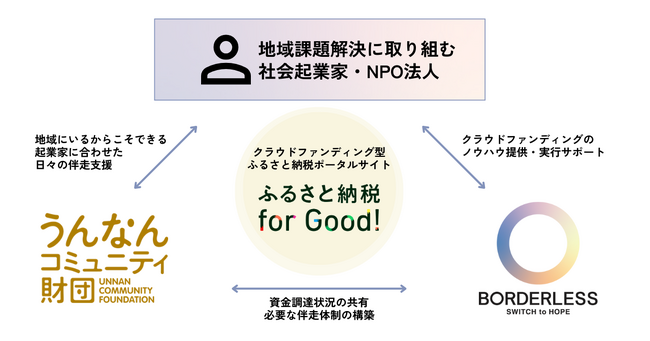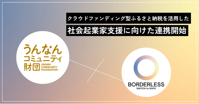 株式会社ボーダレス・ジャパン(東京都新宿区、代表取締役社長:田口 一成、以下「ボーダレス」)は、公益財団法人うんなんコミュニティ財団(島根県雲南市、代表:郷原 剛志、以下「コミュニティ財団」)と連携し、クラウドファンディング型ふるさと納税ポータルサイト「ふるさと納税 for Good!」を活用した社会起業家輩出に向けた連携を開始します。
