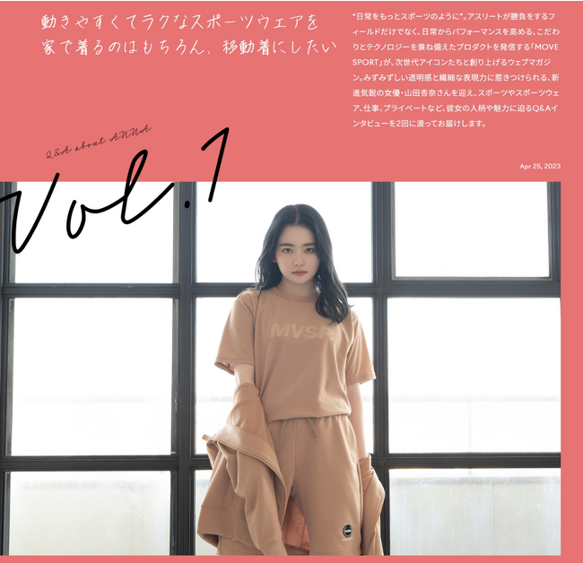 さらに、ブランドコンテンツとして好評を得ているオウンドメディア「MOVESPORT magazine(ムーブスポーツマガジン)」も12月7日(木)よりリニューアル。今回のリニューアルによりデザインを刷新、旬の俳優やアーティストのインタビューを通し、スポーツウェア、そして『MOVESPORT』の魅力を伝えていきます。