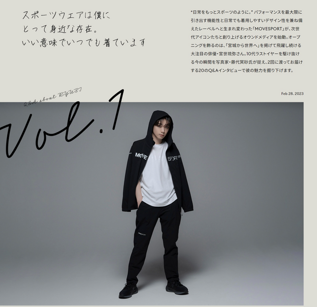 「MOVESPORT magazine」は、次世代アイコンと共に創り上げる『MOVESPORT』のオウンドメディアです。これまでも多くの俳優やアーティストが出演し、彼等のスポーツやファッションに関する想いを、Q&Aのインタビュー形式で動画も交えて紹介することで、スポーツウェアに求められる機能性、そして日常でも着用しやすいデザイン性を兼ね備えた『MOVESPORT』の魅力を伝えてきました。