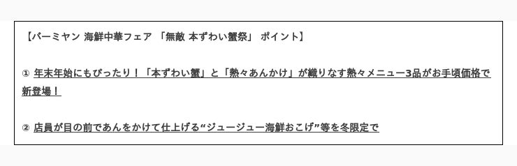 株式会社すかいらーくレストランツ(本社・東京都武蔵野市、代表取締役社長 中島 尚志)が運営するバーミヤンでは、2023年12月7日(木)より、冬にぴったりの熱々あんかけメニューを展開する「無敵 本ずわい蟹祭」を年末年始含む期間限定で実施いたします。