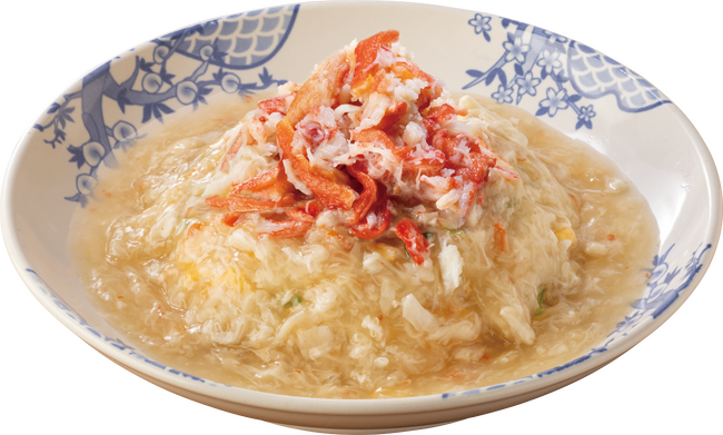 ふんわりとした風味豊かな本ずわい蟹をあんかけにしたチャーハン。バーミヤンこだわりのチャーハンに本ずわい蟹のおいしさがぎゅっとつまったあんを合わせた冬の定番中華です。