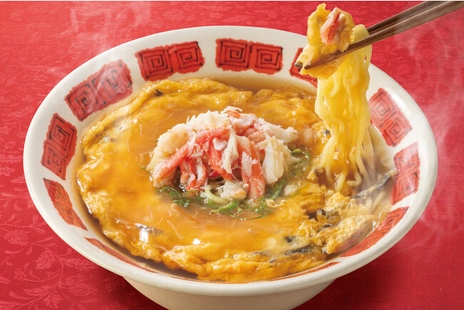 特製オイスターあんとふんわり玉子に、冬の味覚本ずわい蟹をトッピングしました。あんと玉子、自家製麺がバランスよく絡みあう、冬にぴったりのラーメンです。