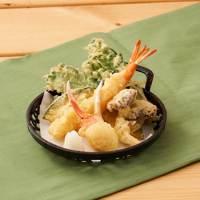 本ずわい蟹天入り季節の天ぷら(一人前 549円(税込604円)、二人前 999円(税込1,099円))