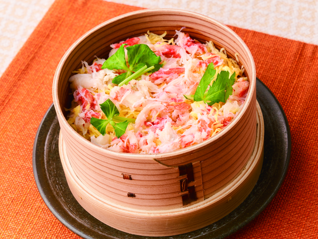ご飯に蟹の旨味が染み込み、蒸したてのせいろから蟹の香りが立つ逸品。