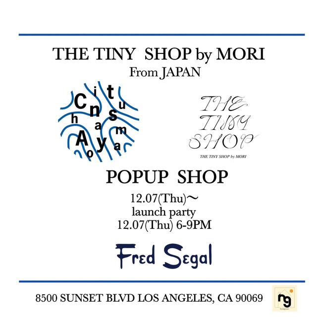 アパレル事業を展開する株式会社ヒューマンフォーラム(本社:京都市中京区 代表取締役会長:出路雅明)が運営する「 USEDを拡張する進化型古着屋 "森"」のインブランド「THE TINY SHOP by MORI」「Chinatsu Aoyama」が12/7(木)からLAのLAのディスティネーショストア「Fred Segal」 にてPOP UP SHOPを開催いたします。