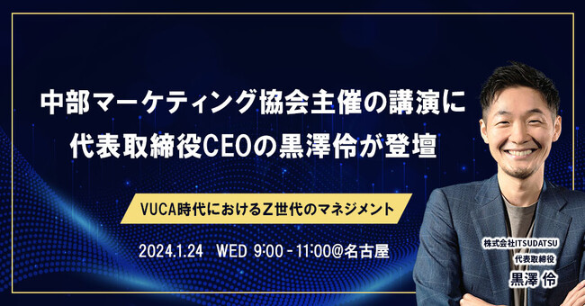 最優先育成人材発掘・抜擢サービス「KANAME」等を運営する株式会社ITSUDATSU(本社:東京都港区、代表取締役CEO:黒澤伶)は、1月24日(水)に開催される、中部マーケティング協会主催の講演に、当社代表取締役CEOの黒澤伶が登壇することをお知らせいたします。