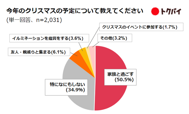 くふうカンパニーグループにおいて、チラシ・買い物情報サービス「トクバイ」を運営する株式会社ロコガイド(以下「ロコガイド」)は、「トクバイ」ユーザー2,031名を対象に、「2023年 クリスマスの過ごし方」に関する調査を実施しました。