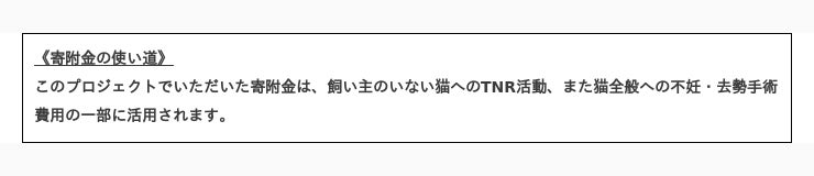人も猫も同じ命として共存していける社会づくりを目指し、過剰な繁殖により亡くなってしまう猫を少しでも減らすために、皆様のご協力をお願いいたします。