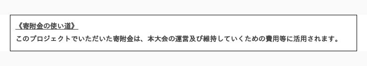 クラウドファンディングを通して、今後より多くの人々に本大会を知っていただき、ご協力いただくとともに一緒に盛り上げていただきたいと思います。
