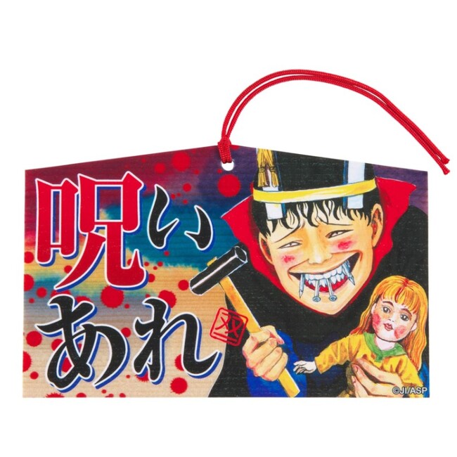 「呪いあれ」双一の台詞がドドんと書かれた絵馬にはどんなご利益があるのだろう。レトロでポップなデザインなのでお部屋に飾るのも◎。