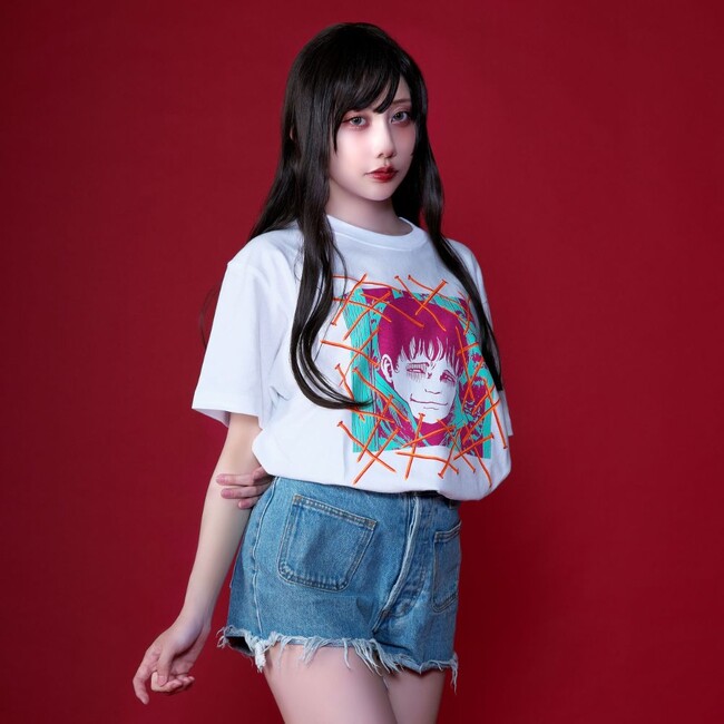 さまざまな魅力を見せる富江をポップアートに落とし込んだ一枚。4色の富江の下には伊藤先生のサインも存在感を示す。ホワイトボディの爽やかさと富江が対照的!