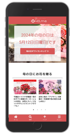 母の日についての様々な情報を発信している、母の日に特化した情報メディアサイト「母の日.me」では、毎年の母の日はいつ?を解決してくれるコンテンツをはじめ、今人気の母の日ギフトがわかる300以上のギフトランキングなど、プレゼント選びでお悩みの方に役立つ情報を発信しています。