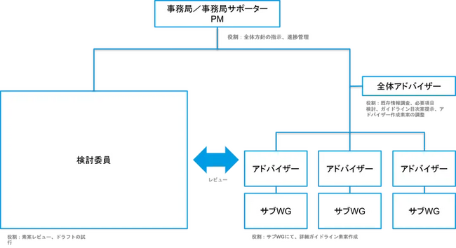 Staywayは、策定メンバーの中でもアドバイザーという役割を担います。アドバイザーの主な役割として、生成AIに関して持っている知見を基に、ガイドラインのドラフトを作成します。ドラフト作成の過程では、実効性を高めるために、金融機関の方を中心に構成される検討委員と複数回レビューの場を設け、生成AIガイドライン策定に努めます。