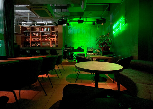 映像メディア制作を手掛けていた現代表と音楽プロデューサー(現店長)が意気投合し「ジャンルの垣根を超えたアーティストとファンが気軽に交流できる秘密基地」の実現に向けて計画がスタートしたのは2020年でした。しかし直後に起こったコロナ渦で多くのアーティスト達が活動の場を奪われていく現状に直面。私たちはアーティスト達に向けた自由な表現活動の場の提供、より個人の嗜好や希少性にマッチしたサービスの実現を課題に、準備を重ねてきました。こうして完成したElectric Cafeの可能性を実証するため、オープンに先駆けた10月末~11月にかけて業界人やアーティストを招いてのライブ・レセプションを実施。参加したメジャーアーティストから高い評価をいただき、潜在力の高さをアピールすることができました。上質なバーとしての魅力の追求は勿論のこと、多彩なクリエイティブ用途にお応えできる空間づくりを行ってまいります。