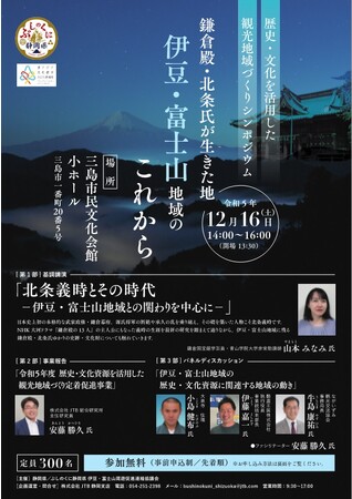 歴史・文化を活用した観光地域づくりシンポジウム「鎌倉殿・北条氏が生きた地 伊豆・富士山地域のこれから」を開催します