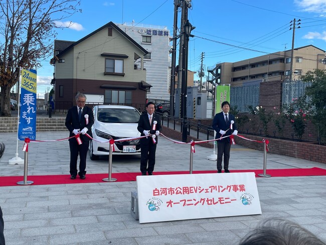 株式会社REXEV(本社:東京都千代田区、代表取締役社長:渡部 健、以下「REXEV」)は、福島県白河市にて電気自動車(以下「EV」)カーシェアリング事業の支援を開始いたしました。REXEVが運営するeemoカーシェアリングのフランチャイズとして(公財)白河市観光物産協会(所在地:福島県白河市郭内1-2)が加盟し、住友三井オートサービス株式会社(本社:東京都新宿区、代表取締役社長:佐藤 計、以下「SMAS」 )と連携して、2023年12月1日よりEVカーシェアリング事業を開始いたしました。同日、JR白河駅前にて鈴木和夫白河市長ら参加のもと、オープニングセレモニーが行われました。