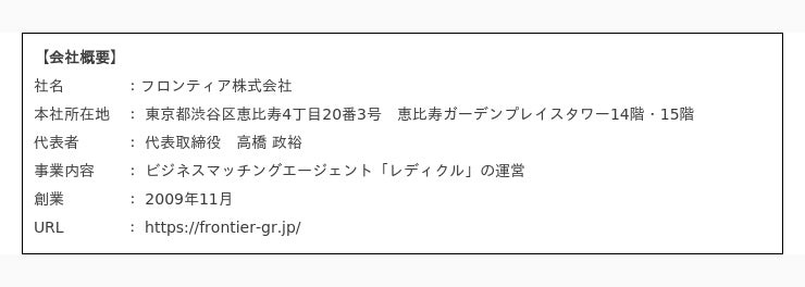 「フロンティア株式会社」のプレスリリース