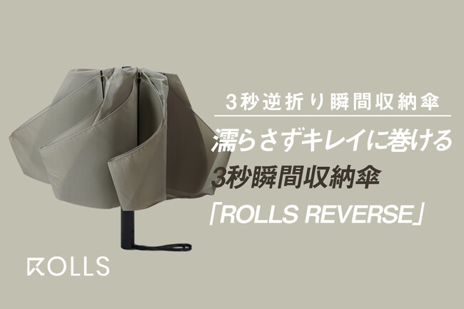 ROLLSのシリーズは、「雨の日を晴れの日と同じくらい美しくする」という発想から生まれたブランドです。傘の煩わしさによってかかるストレスをなくしたいという思いから、お客様の声を反映させ続け、3度にわたるモデルチェンジを経て「ROLLS REVERSE」のリリースに至りました。2019年に第一弾商品「ROLLS CLASSIC」リリースから、「ROLLS LIGHT」、「ROLLS AUTO」と「お客様のニーズが私たちの追求するべき道」をモットーにお客様の声に真摯に耳を傾けながら進化させ続けてきました。開発に費やした時間は3年。ROLLS REVERSEは最高傑作となっています。