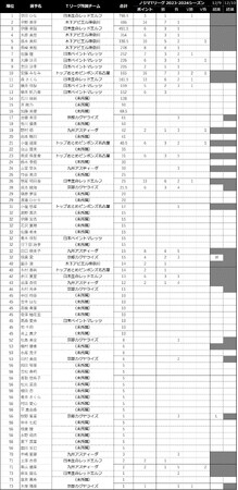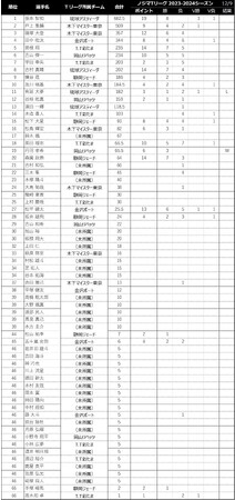 ※対象となる日程内にて消化試合数が異なる為、女子10試合、男子は14試合がポイント対象となります。