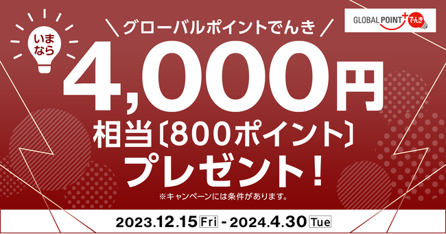 三菱UFJニコスは12月15日から来年4月30日まで、三菱UFJカードの個人会員向け優待特典「グローバルポイントでんき」への新規加入でもれなく4,000円相当(※1)のポイントがもらえるキャンペーンを実施します。
