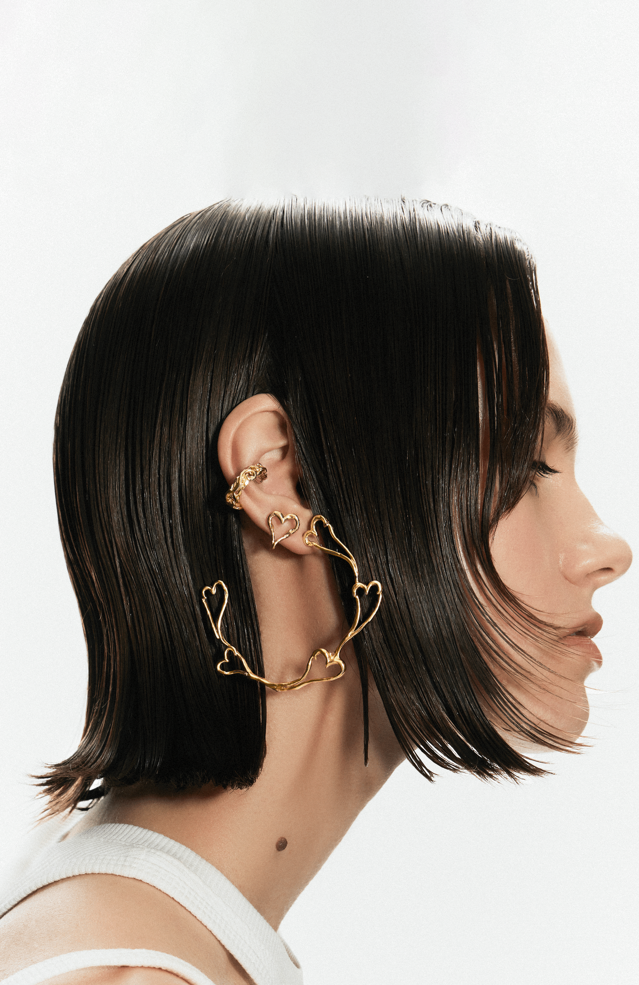 今回発表するコレクションは、リング、イヤリング、ペンダント、チョーカー、ブレスレットから構成され、抽象的なハートや造形的な花、脱構築されたチェーンや鳥を思わせる形などのモチーフが特徴となっています。