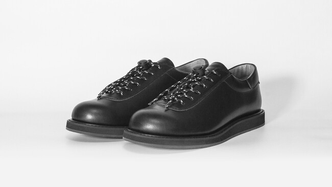 アッパーはブランドオリジナルの防水レザーを使用、シューレースにはアウトドアにあるパラコードとコードロックを使用することでフィット感の調整がしやすく脱ぎ履きも容易となっている。 別に蝋引きの平紐も付属しているので、オーソドックスなスタイルにも履きやすくなっている。 ソールはボリュームのあるbulueoverオリジナルソールユニットを組み合わせることで、ブーツライクな重厚感と高級感のある仕上がりに。 また、マッケイ製法でアッパーとソールを張り合わせているので、アイナカがすり減るまでソール交換が可能。