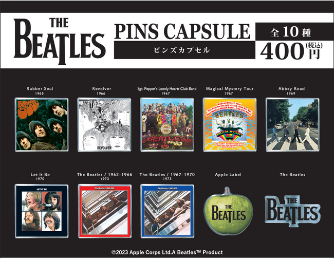 このたび、ザ・ビートルズのニュー・シングル『ナウ・アンド・ゼン』と、その楽曲や追加曲を収録した『ザ・ビートルズ 1962年~1966年』『ザ・ビートルズ 1967年~1970年』の発売を記念したカプセルトイ「The Beatlesピンズカプセル」の発売が決定いたしました!本日より全国の「gashacoco(ガシャココ)」、「ガシャポンのデパート」ほか、カプセルトイコーナーにて販売を開始いたします。