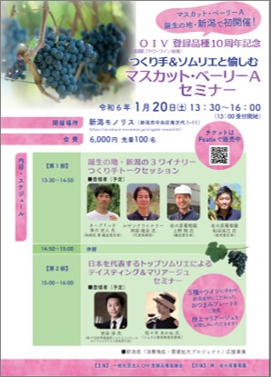 今、大注目の日本ワイン。その日本ワインの中でも、日本で最も多く生産されワインとして親しまれているブドウ品種「マスカット・ベーリーA」は新潟生まれ。2013年にOIV(国際ブドウ・ワイン機構)に品種登録されてから約10年という節目に、初の新潟開催でマスカット・ベーリーAに特化したセミナーを実施いたします。
