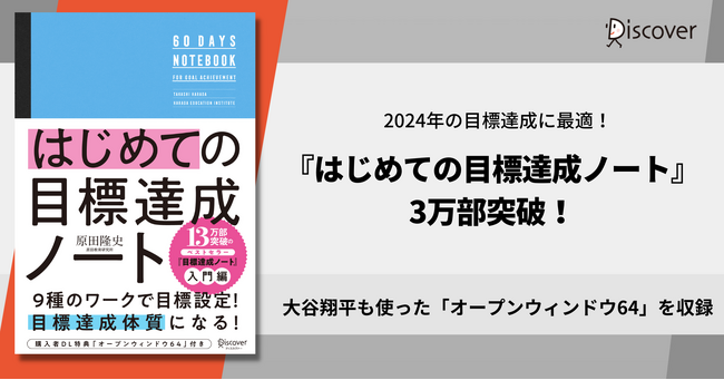 株式会社ディスカヴァー・トゥエンティワン(本社:東京都千代田区、取締役社長:谷口奈緒美)は2023年9月22日刊行の『はじめての目標達成ノート』(原田隆史・著)を増刷し、3万部を突破しました。