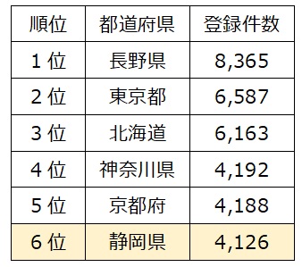 じゃらんnetに登録されている観光スポット数も全国6位と多い
