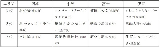2位:柿田川公園(清水町) 3位:エスパルスドリームプラザ(静岡市)