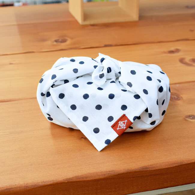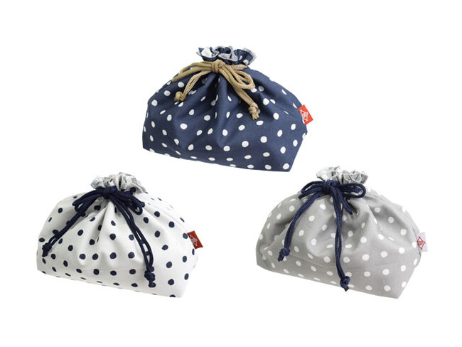 その豆絞り柄をデザインした綿素材のランチ巾着、ランチクロス。