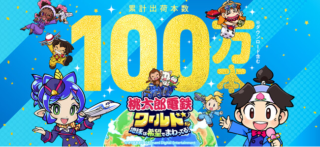 株式会社コナミデジタルエンタテインメントは、発売中のNintendo Switch(TM)用ソフト『桃太郎電鉄ワールド ~地球は希望でまわってる!~(以下、桃鉄ワールド)』の累計出荷本数(ダウンロードを含む)が、100万本※を突破したことをお知らせします。