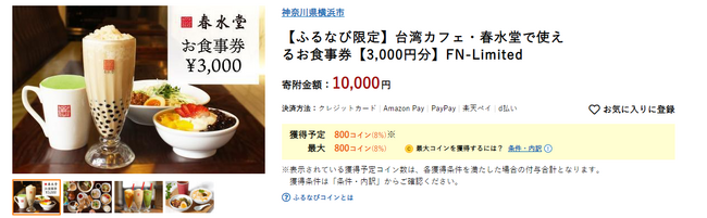 株式会社アイモバイル(本社:東京都渋谷区、代表取締役社長:野口哲也、東証プライム市場)が運営するふるさと納税サイト「ふるなび」( https://furunavi.jp/ )は、新たに神奈川県横浜市の返礼品として台湾カフェ・春水堂のお食事券をふるなび限定返礼品として開始しました。
