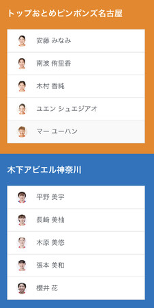 ノジマTリーグ 2023-2024 公式戦 12月23日開催 トップおとめピンポンズ名古屋 vs 木下アビエル神奈川 ベンチ入り選手発表