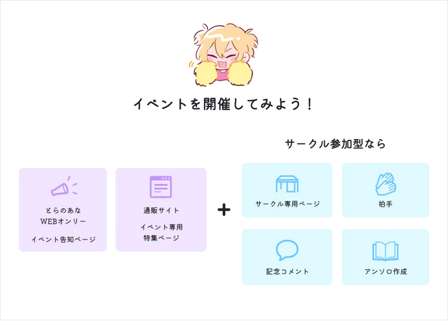 ※「とらのあなWEBオンリーマルシェ機能」は、2024年2月1日(木)以降に開催するイベントから申し込み可能です。