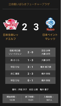 ノジマTリーグ 2023-2024シーズン 公式戦 12月25日開催 日本生命レッドエルフ vs 日本ペイントマレッツ 試合結果