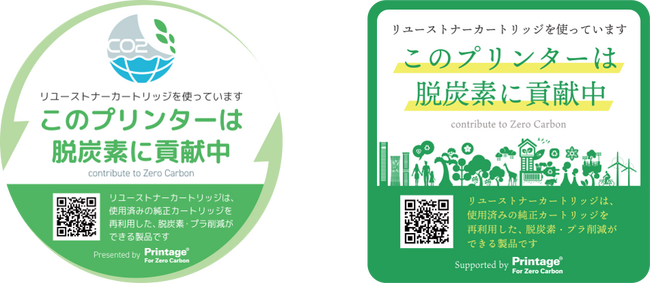この活動の一環として、リユーストナーカートリッジをご利用の皆さまに「脱炭素ステッカー」の作成・配布を行っており、リユーストナーカートリッジの普及およびご利用者さまの脱炭素活動のアピールにつなげて参ります。