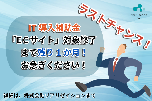 ECサイト制作が補助対象になるのは令和5年1月29日まで!「IT導入補助金2023」の申請は認定支援機関の株式会社リアリゼイションにおまかせください。