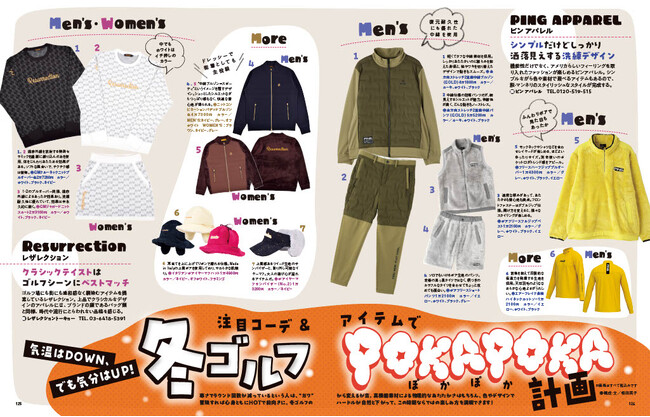 季節企画としては、寒い冬を乗り切るための「冬ゴルフPOKAPOKA計画」として暖かアイテムと注目コーデを10pにわたって紹介