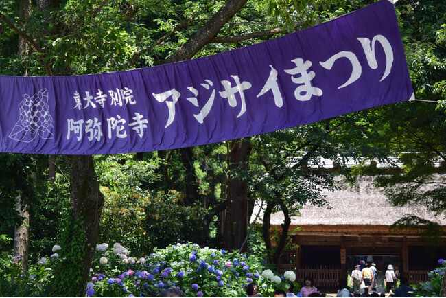 80種、約4,000株のあじさいが境内に植栽されており、「あじさい寺」としても有名な阿弥陀寺で、この時期でしか見られないあじさいをご鑑賞いただけます。