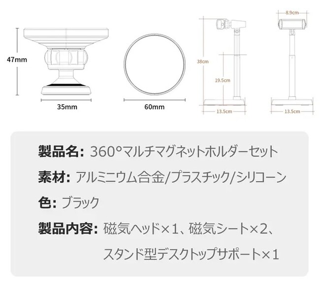 ■スマホがどこでも貼り付いて安定性抜群【360°マルチマグネット&スマホスタンド】