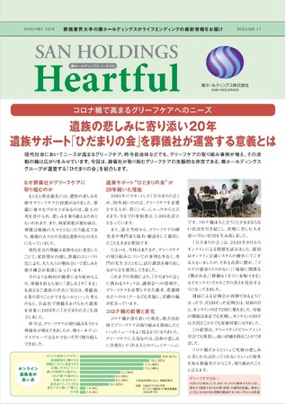 公益社などの葬儀社を傘下に持ち、終活から葬儀後までのライフエンディングのトータルサポートを提供する、燦ホールディングス株式会社(東京本社:東京都港区、大阪本社:大阪市北区、代表取締役社長:播島 聡)は、『燦ホールディングスHeartful Vol.11』を発行します。